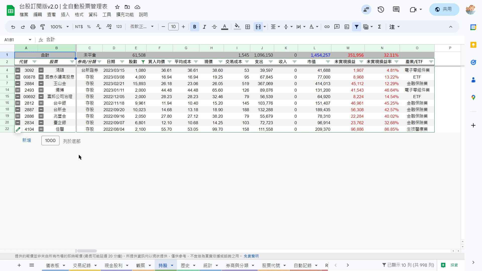 當持股與歷史分頁的資料顯示不齊全時,只需要按【儀表板】的