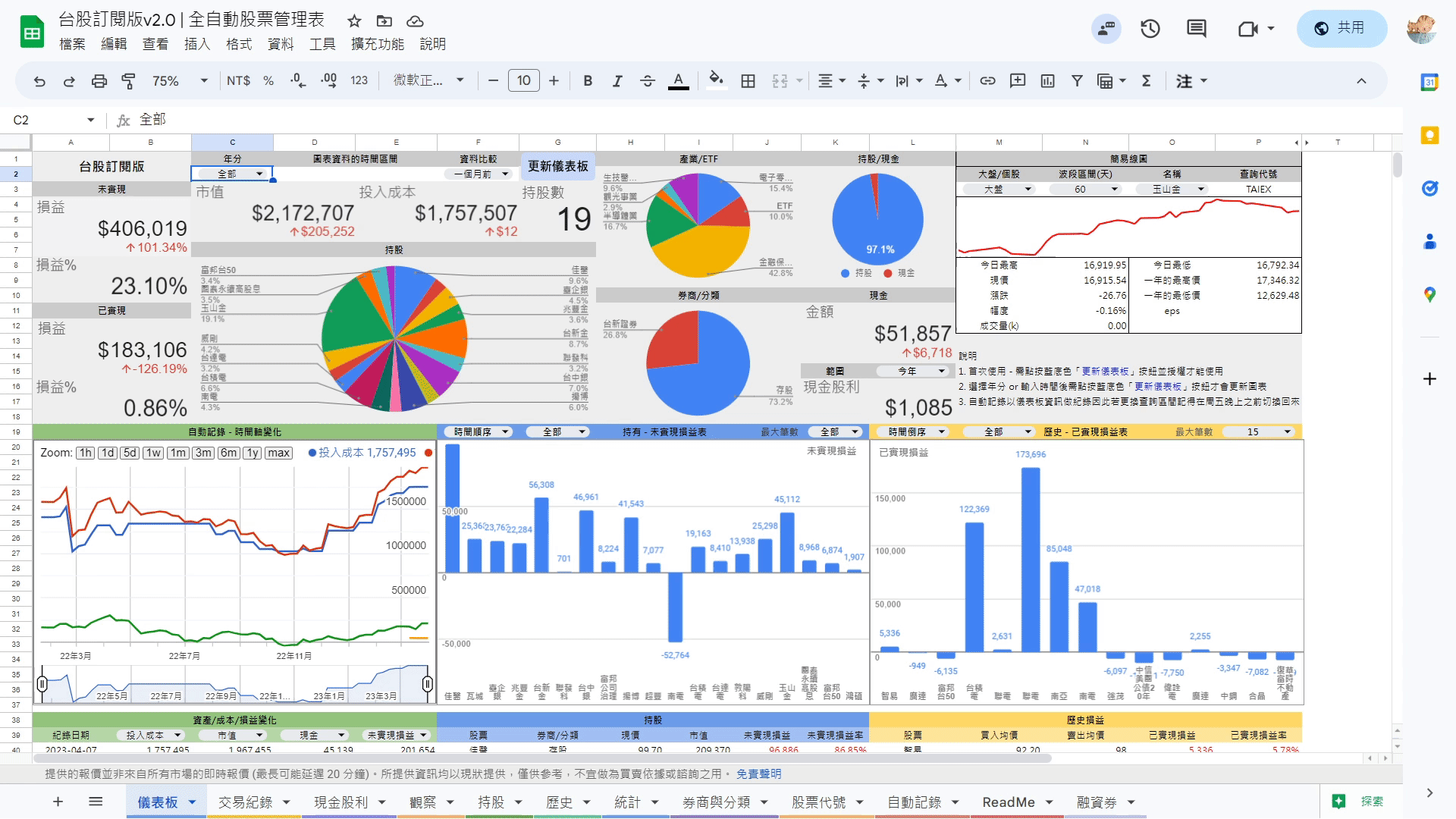 選擇 / 輸入完畢後點按 更新儀表板 並等待指令碼跑完即可
