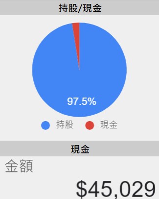 在儀表板會依據資金比例(已投入資金/現金)自動計算百分比,並顯示還有多少現金可投入