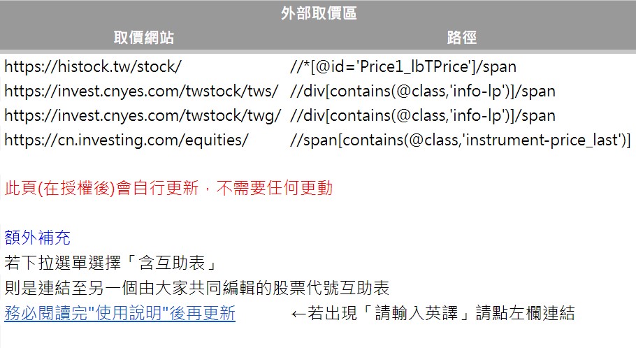 | 含互助表 | 半自動更新 | 開放所有使用者共同編輯,一人更新即所有人都跟著更新 |